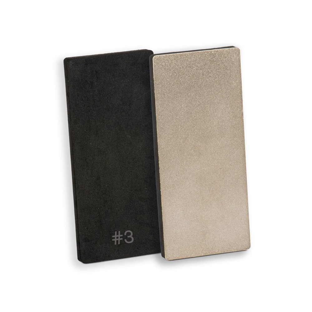 Finns i tre kornstorlekar: #1 (60), #2 (200) och #3 (400). Den mjuka baksidan ger ett bekvämt grepp vid arbete, och den rektangulära formen med kontinuerlig diamantbeläggning gör det möjligt att polera även svåråtkomliga ytor.