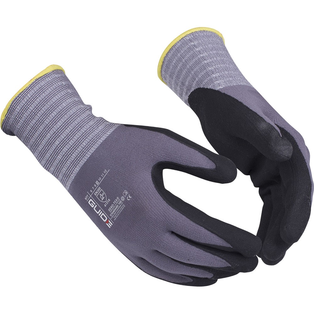 Tunn arbetshandske med nitrilbeläggning i microfoam, utformad för att ge mycket bra torrgrepp och samtidigt fungera som en barriär mot väta. Handsken har en handflatedoppad utsida och är anpassad för arbeten där god känsla och kontroll är viktig.