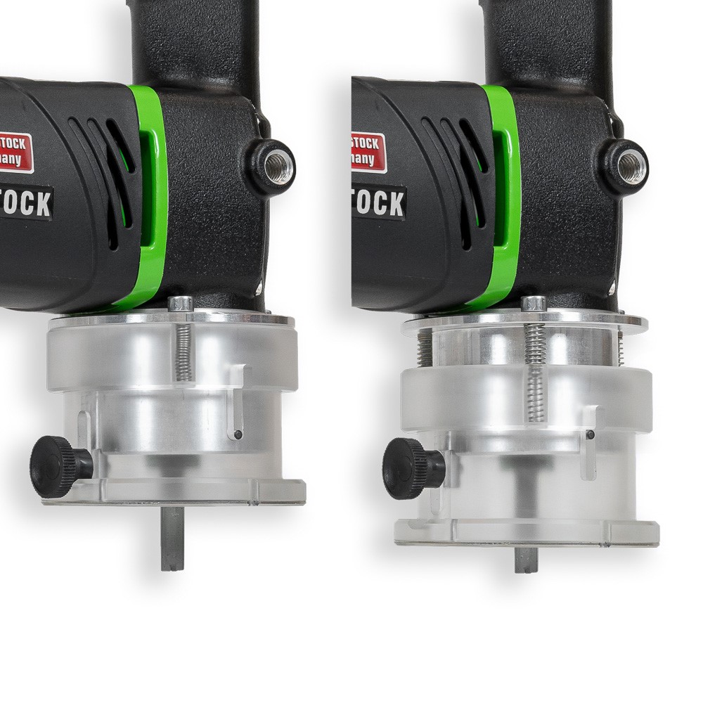 - Utrustad med sugskärm i plexiglas med djupbegränsning för noggrann och ren fräsning.