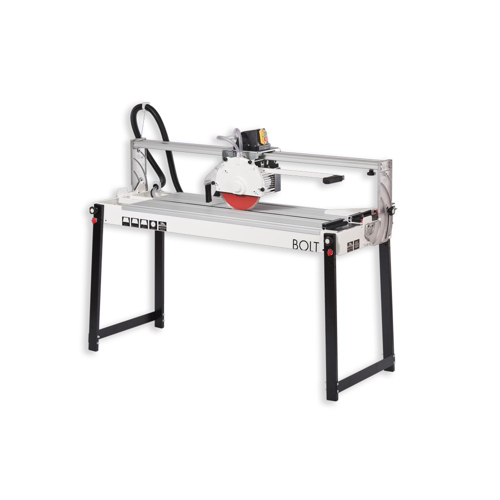 Vattenkyld såg för plattor av keramik i en kraftig och beprövad konstruktion med arbetsbord i aluminium. Motorn upphängd i fyra dubbelkullagrade polypropylenhjul som är justerbara för minimalt spel. Medurs rotationsriktning på klingan.