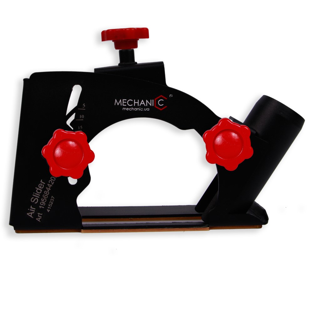 Enheten monteras enkelt på standardhöljet. Sulan med plastöverdrag gör skärningen kontrollerad så att det inte blir några repor på materialet. Ger vinkelrätt av ett snitt. Designen låter dig justera skärdjupet.