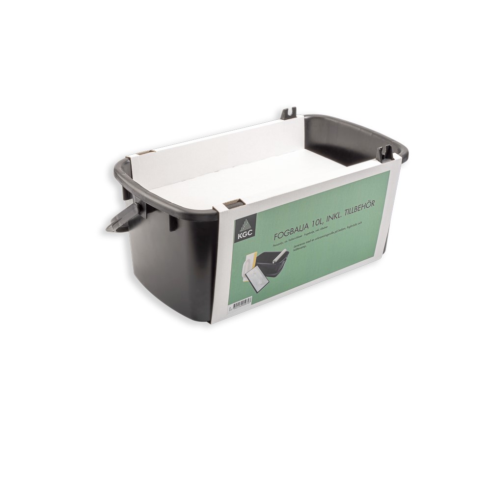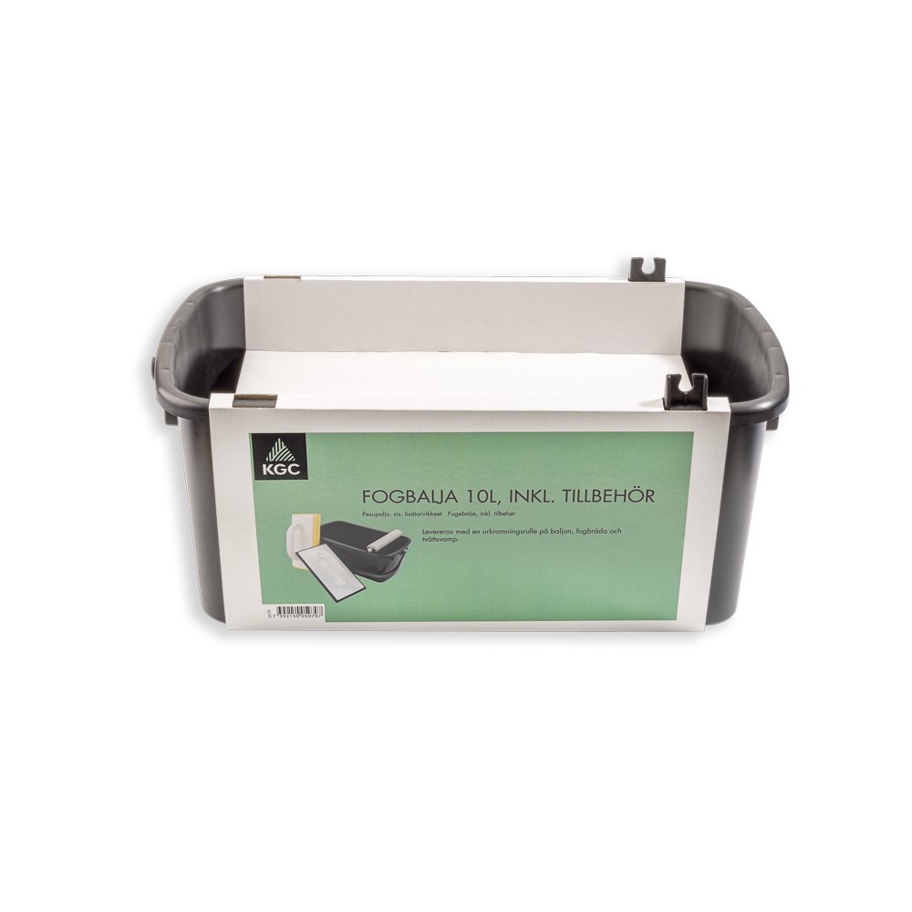Levereras med en urkramningsrulle på baljan, fogbräda och tvättsvamp.
