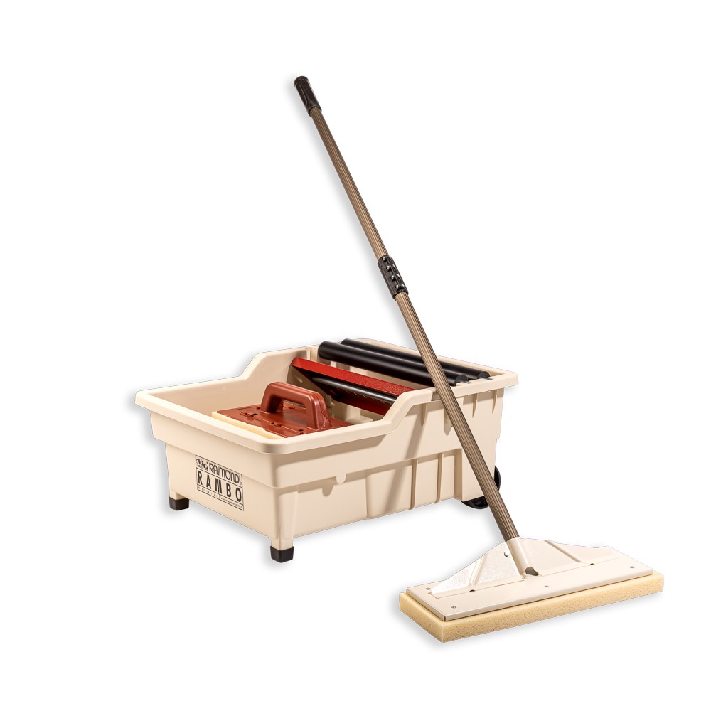 Fogbalja Rambo är ett utmärkt alternativ för att stående kunna utföra tvättningen vid fogning. Efter ursköljning av svampen med skaft, läggs svampen på plåten under rullarna och skaftet trycks nedåt för urkramning av vattnet. Det innebär att hela tvättmomentet kan göras stående.