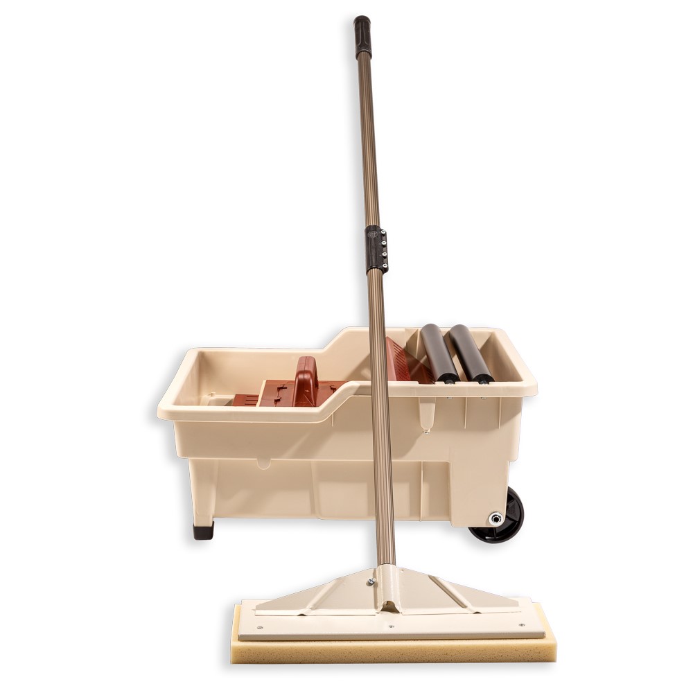 Försedd med två hjul. Levereras med svamp 7654 inklusive tvådelat aluminiumskaft samt tvättsvamp 7506.