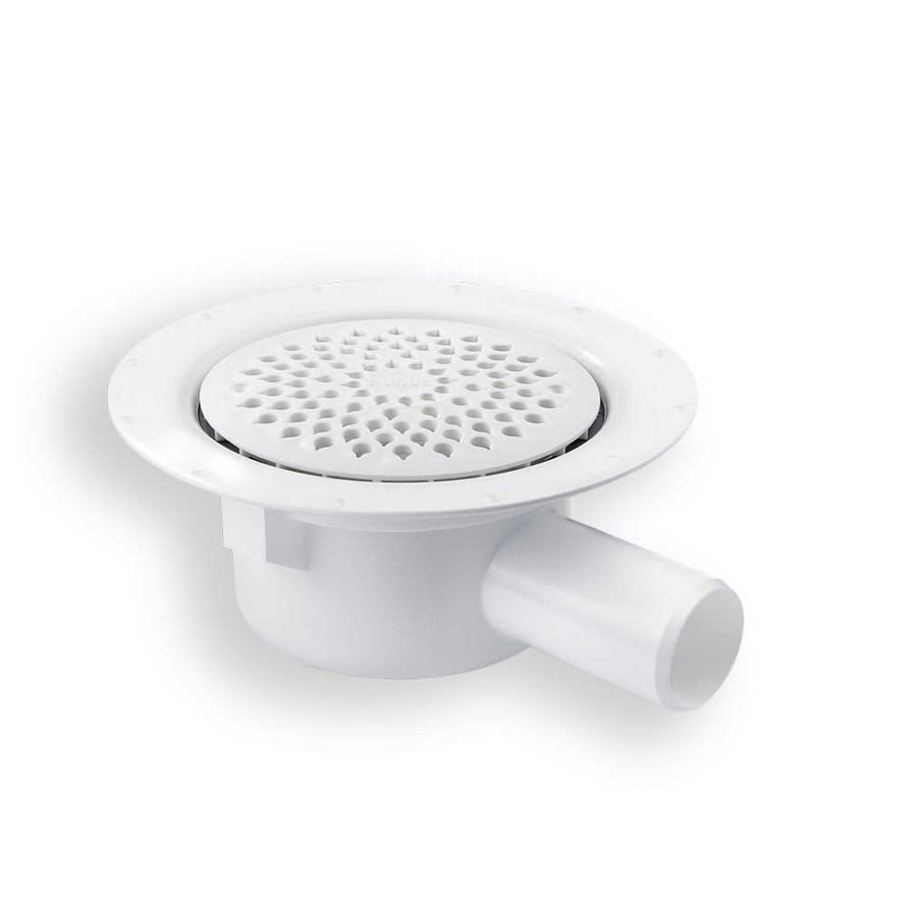 Golvbrunn Freja är den perfekta lösningen för installation i trä- eller betongbjälklag, med dess låga bygghöjd på 99 mm och 50 mm sidoutlopp. Tillverkad i svetsbart PEH-material, levereras Golvbrunn Freja komplett med urtagbart golvbrunnsvattenlås, automatisk klämring och plastsil. Den släta skålen under golvbrunnsvattenlåset förhindrar ansamling av smuts och underlättar rengöring. Dessutom medför den automatiska klämringen att ingen o-ring eller lösa skruvar behövs vid installation. Golvbrunnens sil är utformad för att undvika kvarstående vatten runt silen. Med Golvbrunn Freja får du en praktisk och underhållsvänlig lösning för ditt badrum.
