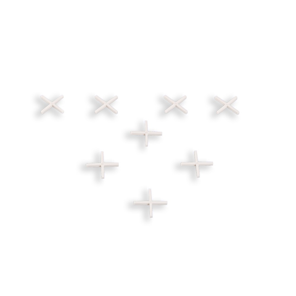Kakelkryss i plast för att ge en jämn fogbredd vid plattsättning. Kryssen kan med fördel sitta kvar i fixet då fogen täcker dem.