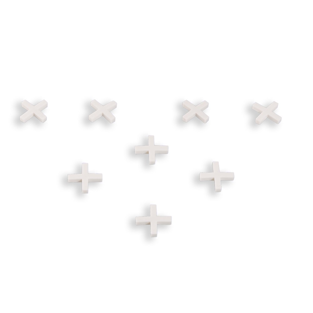 Kakelkryss i plast för att ge en jämn fogbredd vid plattsättning. Kryssen kan med fördel sitta kvar i fixet då fogen täcker dem.