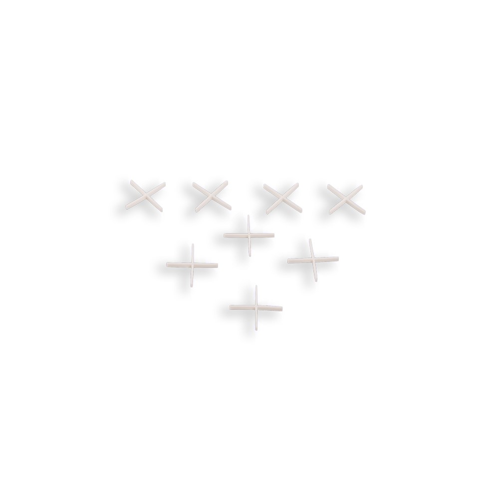 Kakelkryss i plast för att ge en jämn fogbredd vid plattsättning. Kryssen kan med fördel sitta kvar i fixet då fogen täcker dem.